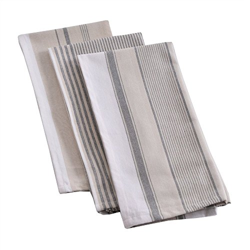 Mahogany Vintage Stripe Kitchen Towels, 100Percent Cotton, Set of 3, Each 18Inch by 28Inch - black