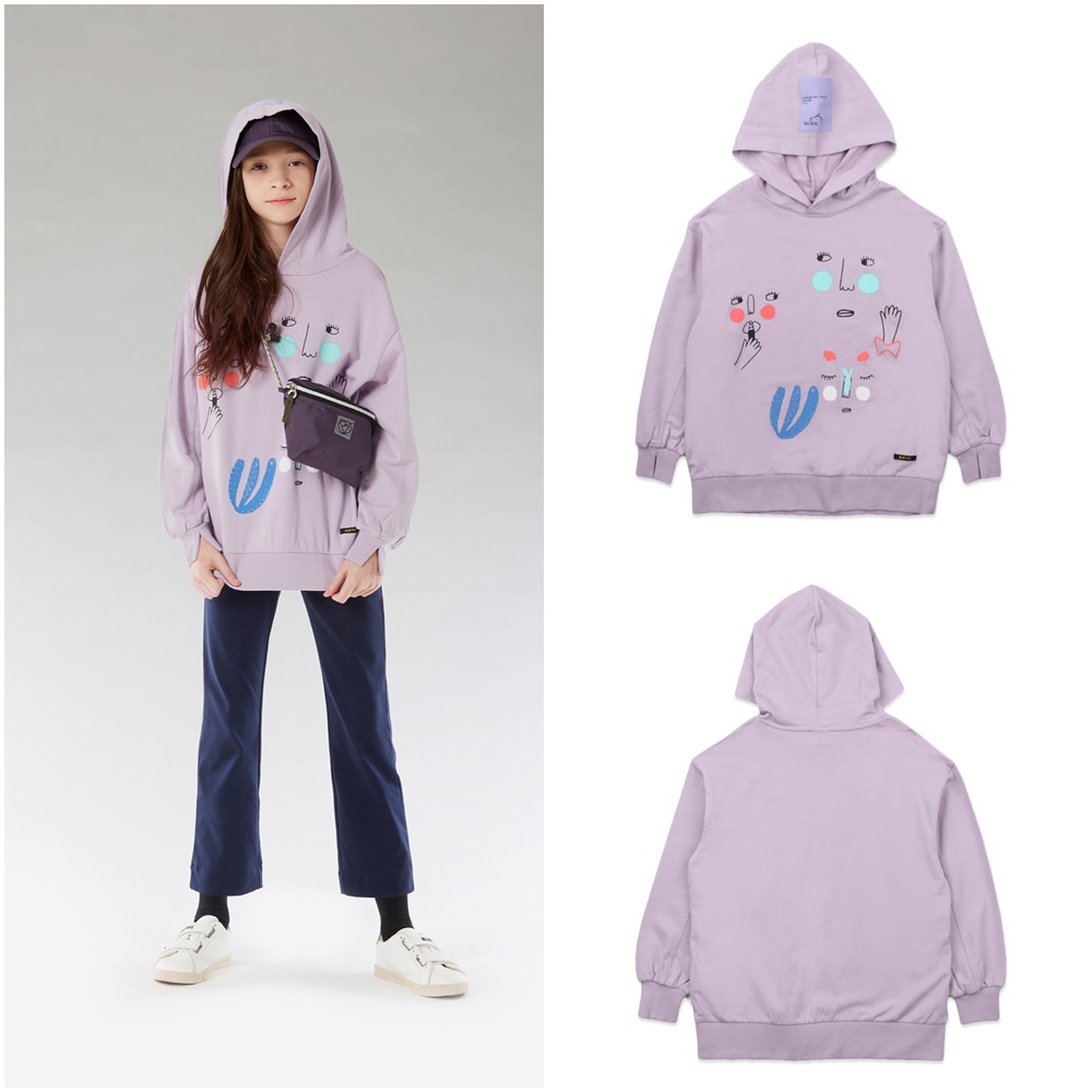 센서티브한 라이트 바이올렛 컬러로 제안한 후드 티셔츠입니다.