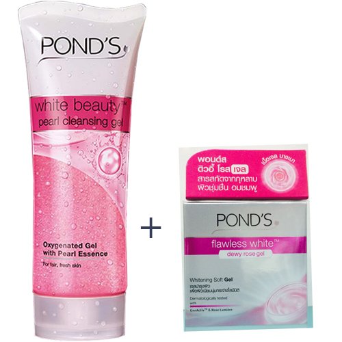 -. Binding : Misc. -. Brand : Pond's -. EAN : 8851111112111 -. Feature : - Pond's White Beauty Pearl Cleansing Gel. 100g : Whitening and Cleansing Gel in one form / Floral scent that smells specifically like roses / - Pond's Flawless White Dewy Rose Gel 50g : Its unique gel formula is gentle to the touch, instantly cools and hydrates your skin. The result? Dewy, soft skin so flawless, it glows / - 1 set consist 2 pcs -. ProductGroup : Beauty -. ProductTypeName : BEAUTY -. Title : New!! set POND'S White Beauty Pearl Cleansing Gel 100g + Flawless White Dewy Rose Gel 50g