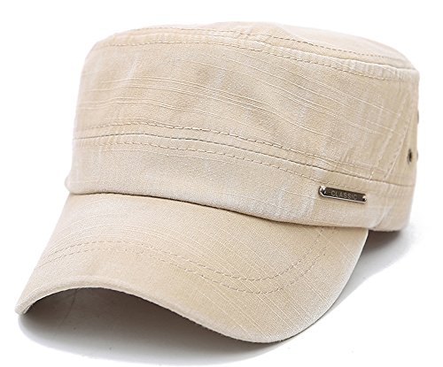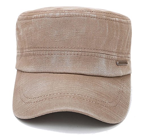 ChezAbbey Solid Brim Flat Top Cap Army Cadet Classical Style Military Hat Peaked Cap