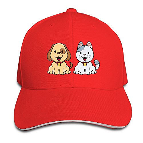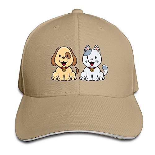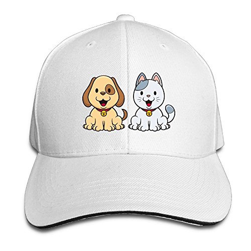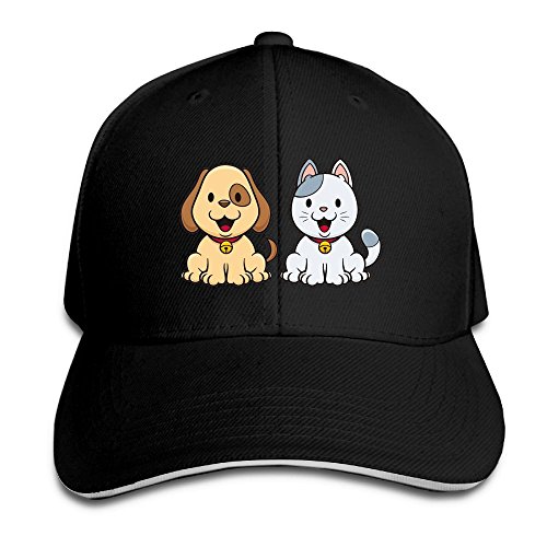 | (Grass8)/Accessories/Hats/DIRECT FROM USA/Grass8 Cartoon Animal Cat and Dog Snapback Sandwich Cap Unisex Black Baseball Cap Hats Adjustab... |