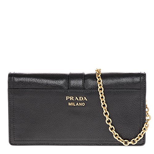 Binding : Apparel Product Description Prada Womena€TMs Grained Calf Leather Cahier Smartphone Case Black: Grained calf leather construction. Gold-toned metal appliquAⓒs. Snap closure. One pocket with zipper for bills and coins. One smartphone compartment. Metal shoulder strap. 4 card slots. Made in Italy. Approximately: 3.8a€ H x 7.2a€ W x 1.2a€ D. 0