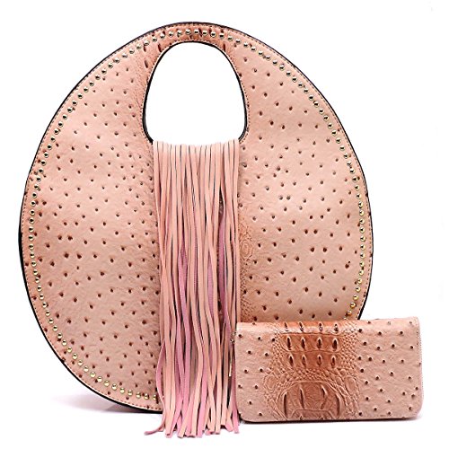 Studio : Western Fashion Publisher : Western Fashion Binding : Apparel Product Description Handbag REPUBLIC® Ostrich Embossed Round Fringe Satchel w/ Strap Wallet- Blush