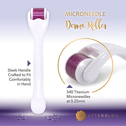 Derma Roller by Afterglow - ULTRA Premium Quality - Cosmetic Microneedling Instrument For Face - 540 Titanium Micro Needle Dermaroller at 0.25mm