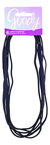 Goody Women's Ouchless Thin Hair Flat Narrow Headwrap, Black, 6 Count