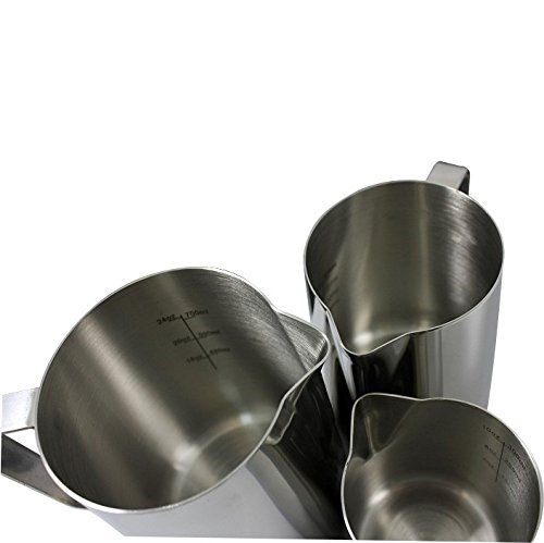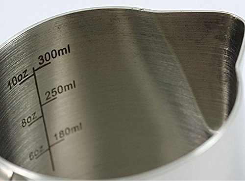 Studio : Rhinowares Publisher : Rhinowares Binding : Kitchen Product Description What's special about Rhinowares Milk Pitchers? The Rhinowares Professional Milk Pitcher speaks to those in the coffee industry: people who have a need for a quality product with less waste. Features of this small sized pitcher include: Measurements etched right into the interior of both sides of the pitcher. The scale is etched in both ounces and millilitres to reduce the guess work when pouring milk. Reducing the waste means dollars saved for your cafe. The Rhinowares pitchers are thick - 1mm food grade stainless steel provides better stretch time for texturing milk. The heavier weight lends to its durability and professional feel. The handle has been ergonomically designed for the busy barista. 0