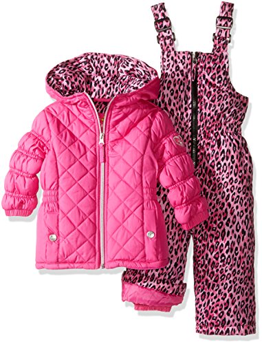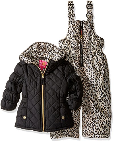 Pink Platinum baby girls quilted snowsuit with cheetah print snow bib