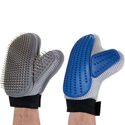 We aim to bring prime quality as well as fancy products and pet supplies or accessories at cheap rates that are certainly better than any other brands. Features 1.Grooming Brush Glove Bundle 2 Pack: Rubber-Tipped Grooming Bath Glove and Steel Pin/mesh Brush Massaging Glove for pets with short, medium, and long-haired coats.