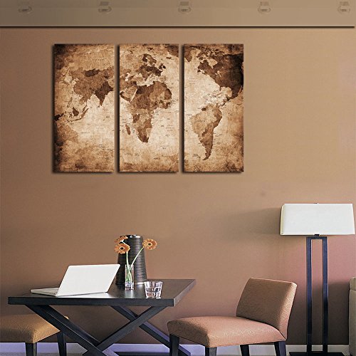 Large Canvas Map Art Framed Already. Accessories Presented, Ready to Hang Easily.