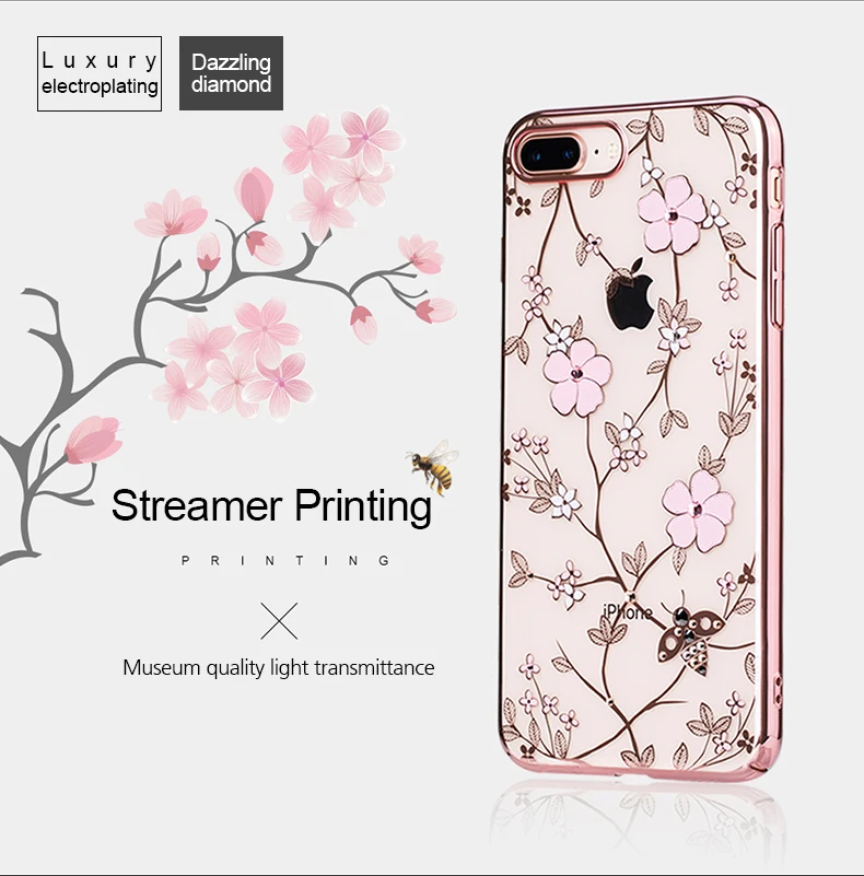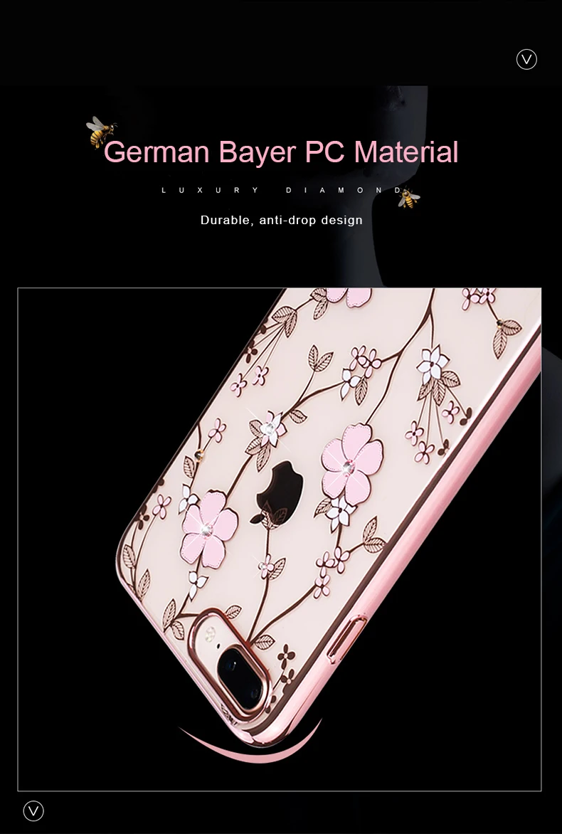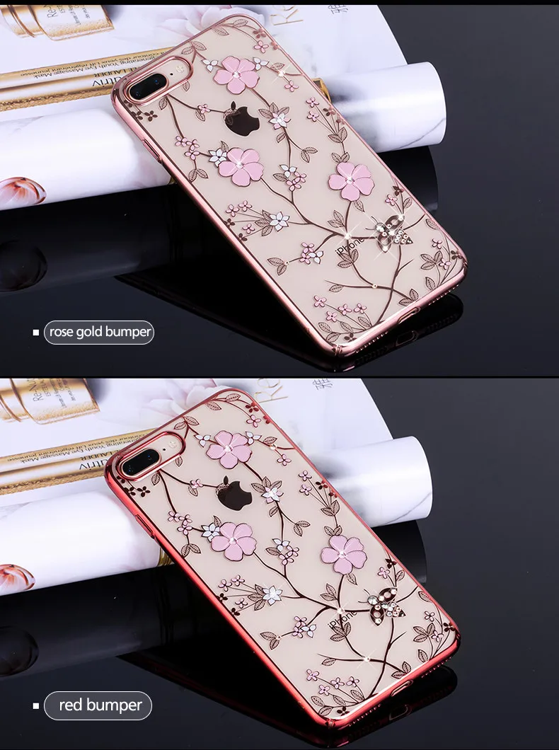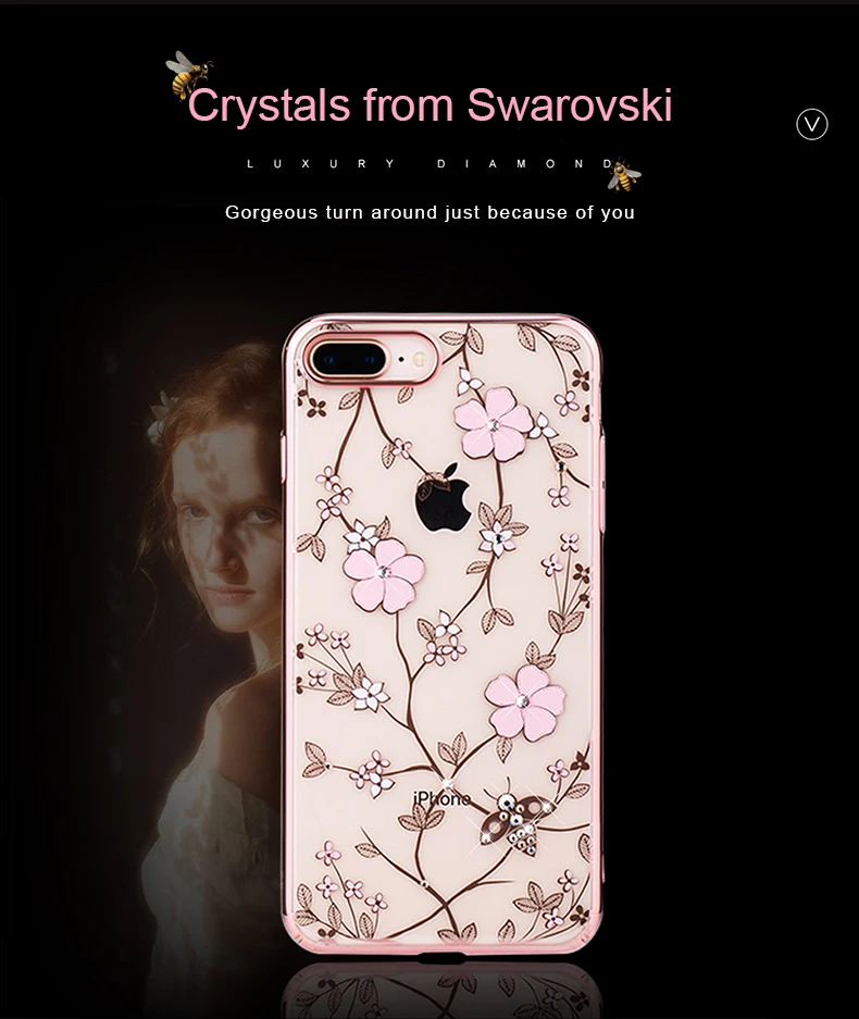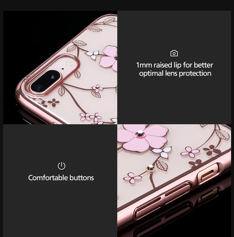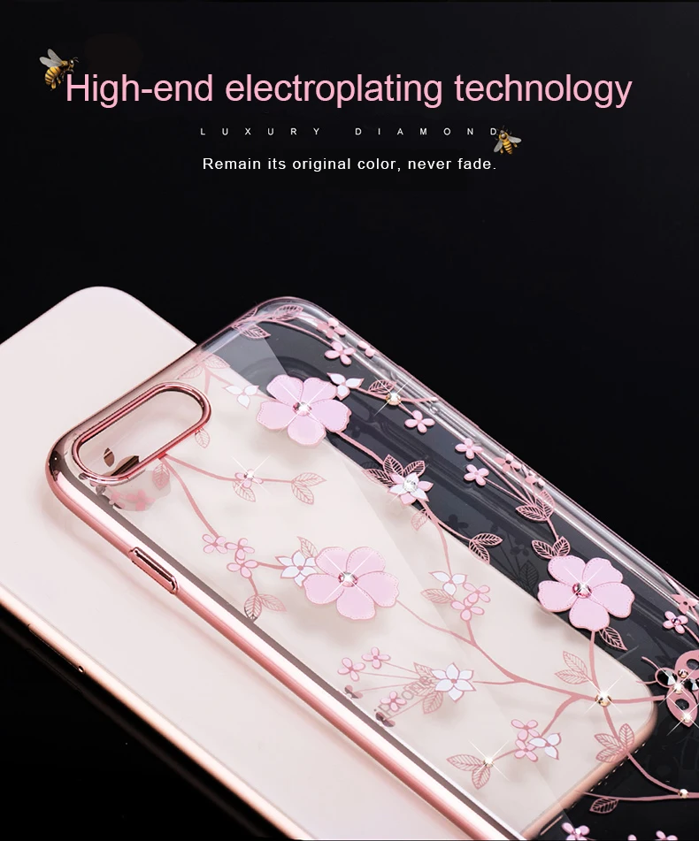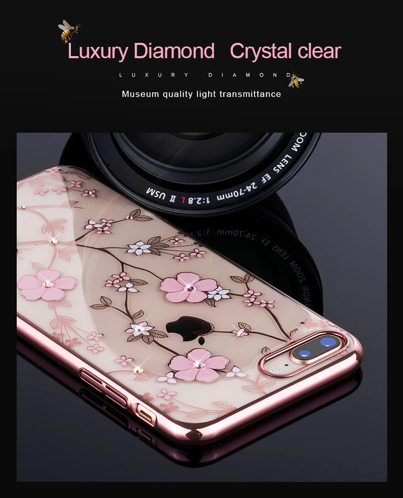 Case Feature:Crystals from Swarovski Diamond Flower Transparent Case