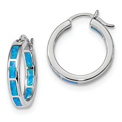 ICECARATS DESIGNER JEWELRY 925 STERLING SILVER BLUE CREATED OPAL IN OUT HOOPS