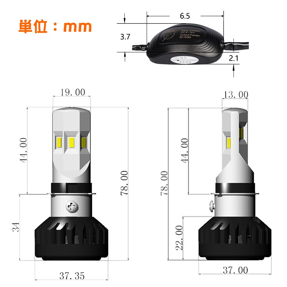 ① The 6-sided design, the COB chip mounted, the light intensity as high as double the halogen has become the brightness equivalent to that of a car.