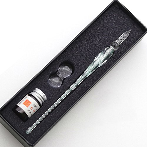 Crystal Glass Dip Ink Pen, Ankena Non-Carbon Ink Signature Pen Creative Writing Tools Ink Gift Pen Vintage Handmade Dip Pen For Writing Art Decoration(Green)