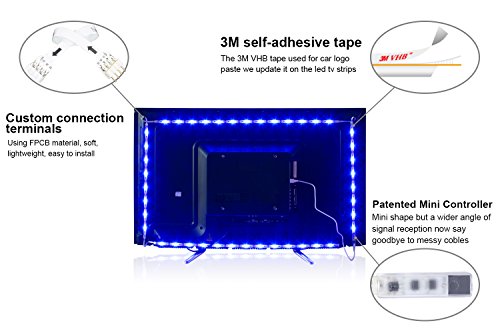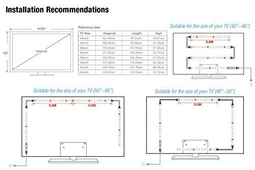 LED Light Strips,Maylit(tm) RGB LED Strip USB TV Light Strip Mood Backlighting For 40 To 60 IN HDTV with Remote.LED Strip Light(40" to 60" Three Side)