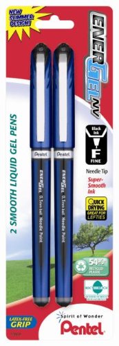 Pentel EnerGel NV Liquid Gel Pen, 0.5mm, Needle Tip, Black Ink, 2 Pack (BLN15BP2A)