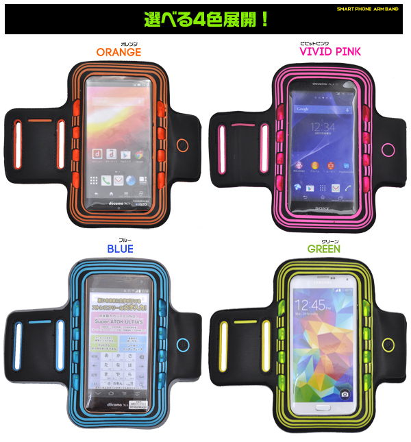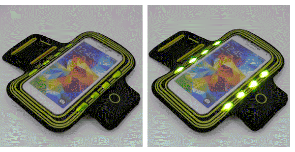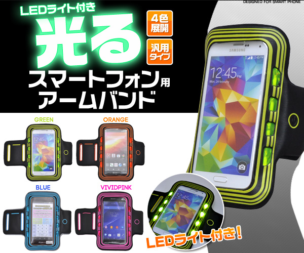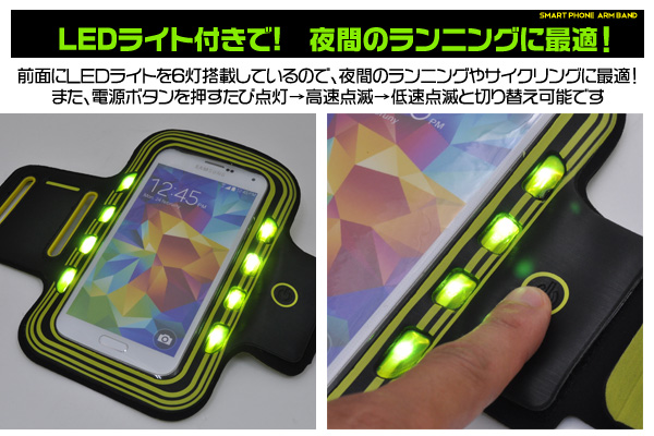 エクササイズやランニングに便利なLEDライト付きスマートフォン用アームバンド。 二の腕に装着するので運動中、邪魔にならず、快適に音楽と運動を一緒に楽しめます!