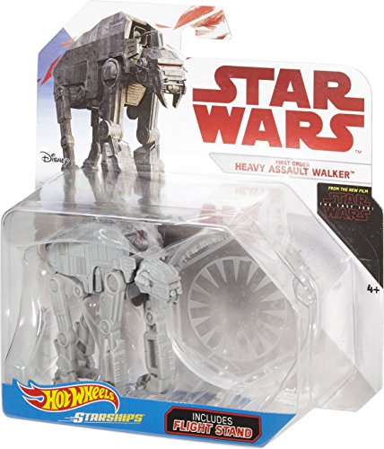 -. Binding : Toy -. Brand : Hot Wheels -. EAN : 0887961426588 -. Feature : Kids will love this assortment of iconic Star Wars vehicles / Attach the flight stand (included) to display your Starship collection / Starships are compatible with Hot Wheels Star Wars play sets (sold separately), so kids can build an entire galaxy of play! / Makes a great gift for kids, collectors and Star Wars fans of all ages / Collect them all! -. IsAdultProduct : 0 -. Label : Mattel -. Manufacturer : Mattel -. Model : FBB05 -. MPN : FBB05 -. PackageQuantity : 1 -. PartNumber : FBB05 -. ProductGroup : Toy -. ProductTypeName : TOYS_AND_GAMES -. Publisher : Mattel -. ReleaseDate : 2017-08-24 -. Studio : Mattel -. Title : Hot Wheels Star Wars: The Last Jedi First Order Heavy Assault Walker Die-Cast Vehicle -. UPC : 887961426588 -. Warranty : 1 year warranty against manufacturer defects