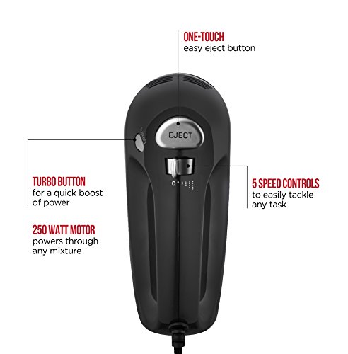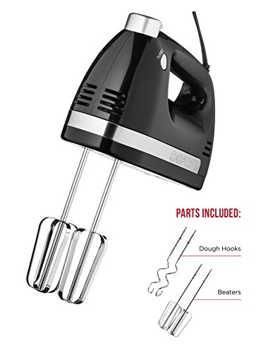 EASY EJECT: One-touch easy eject button for swapping out chrome plated Beaters and FREE included bonus Dough Hooks