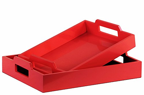 Benzara Fine Rectangular Serving Tray with Cutout Handles,Set of 2-Red