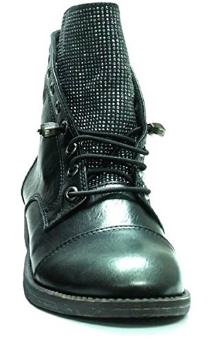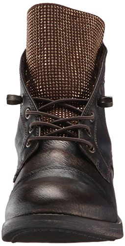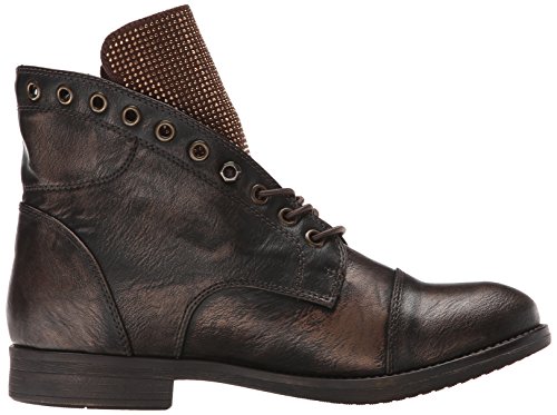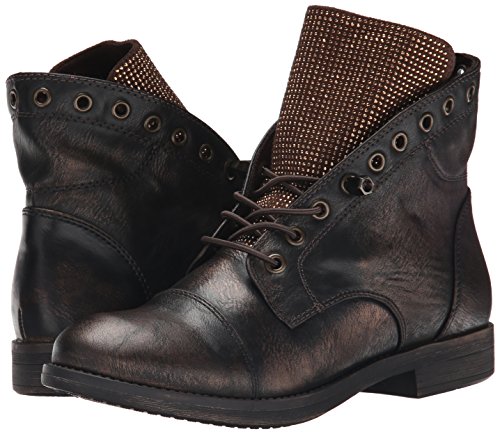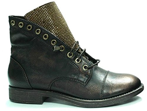 Product DescriptionBurnished bootie with heat set metal tongue, elastic lace, metallic0