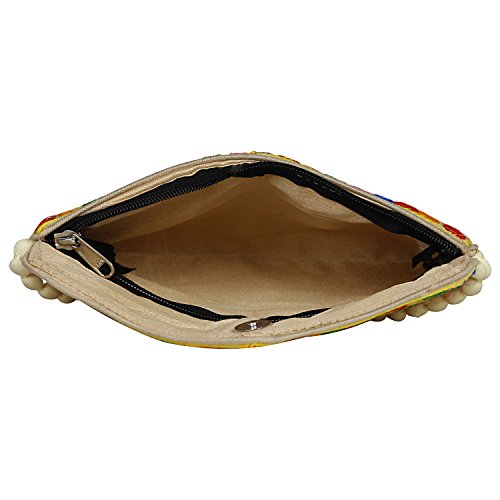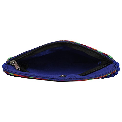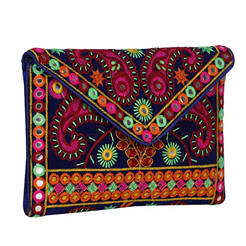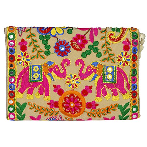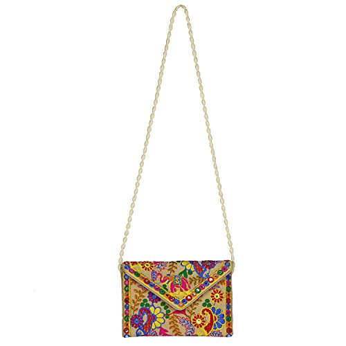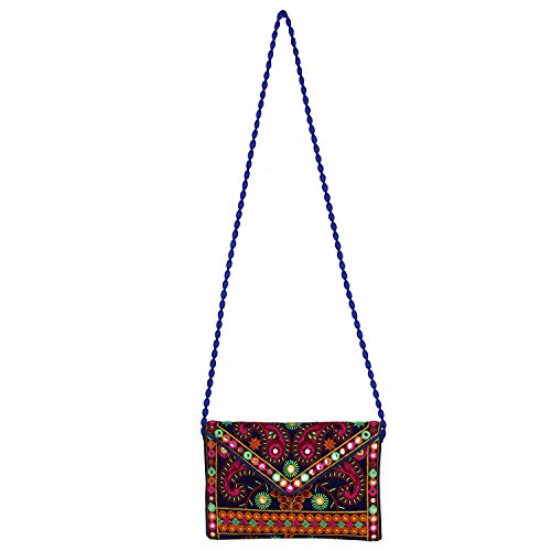 -. Binding : Apparel -. Brand : Aaditri International -. Department : womens -. Feature : Embroidery over velvet material with Multicolor cotton threads work / The bag is crafted with colorfull cotton threads appliqué, Elephant embroidery, sequins late mirror work both side. / Medium Size- Width*Height: 9inch*6.5inch / Zipper closure as well as a magnetic button beneath the flap hang from cotton pom pom trim creamy strap. 1 compartment along with one zippered pocket / Handcrafted bag made by keeping in mind the latest fashion of women. It is very easy to carry with ampler of space and will definitely boost your look and personality with its great art work of rajasthan. Note :- Handicraft Items may vary slightly from the image. Because embroidered patches are recycled in this bag, no two are ever identical. However the theme will be the same. -. ProductGroup : Apparel -. ProductTypeName : ACCESSORY -. Size : Small -. Title : Rajasthani jaipuriart Sling Bag (Vibrant multicolor) Foldover Clutch Purse