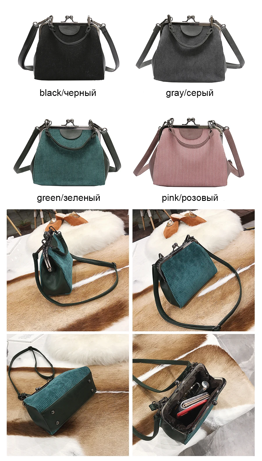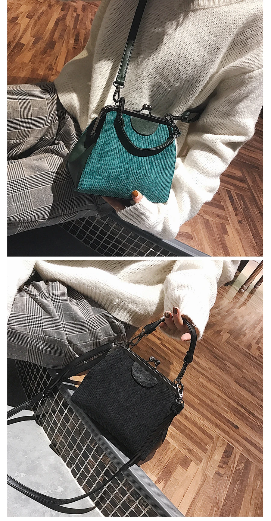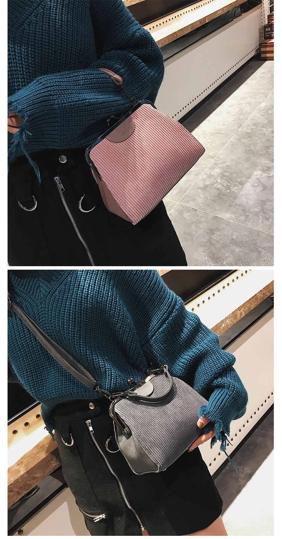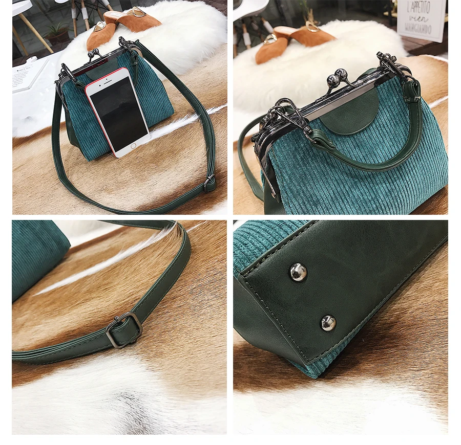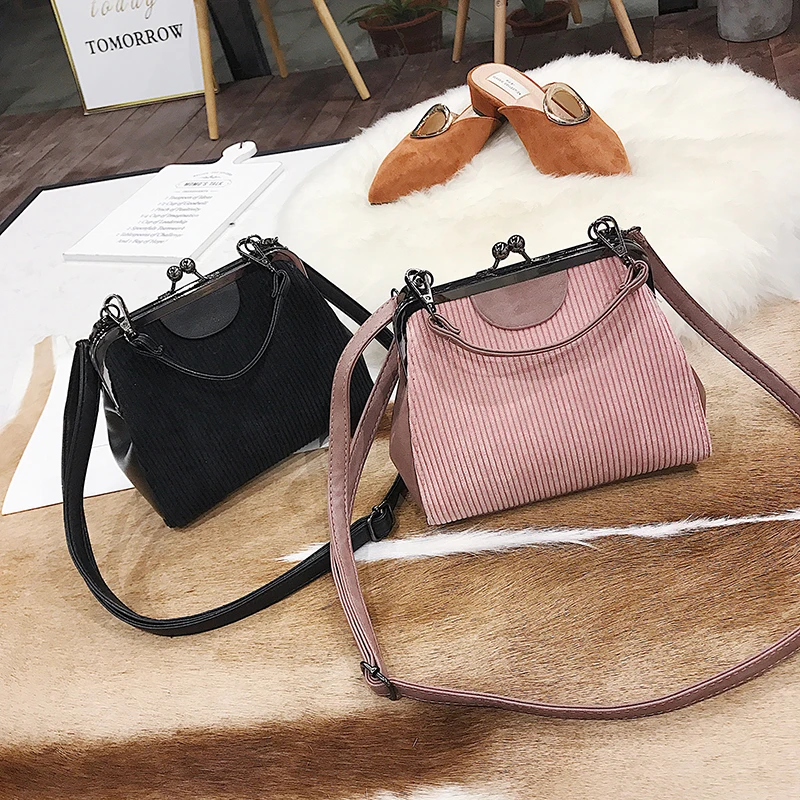 Feature 3:Striped corduroy women messenger bags