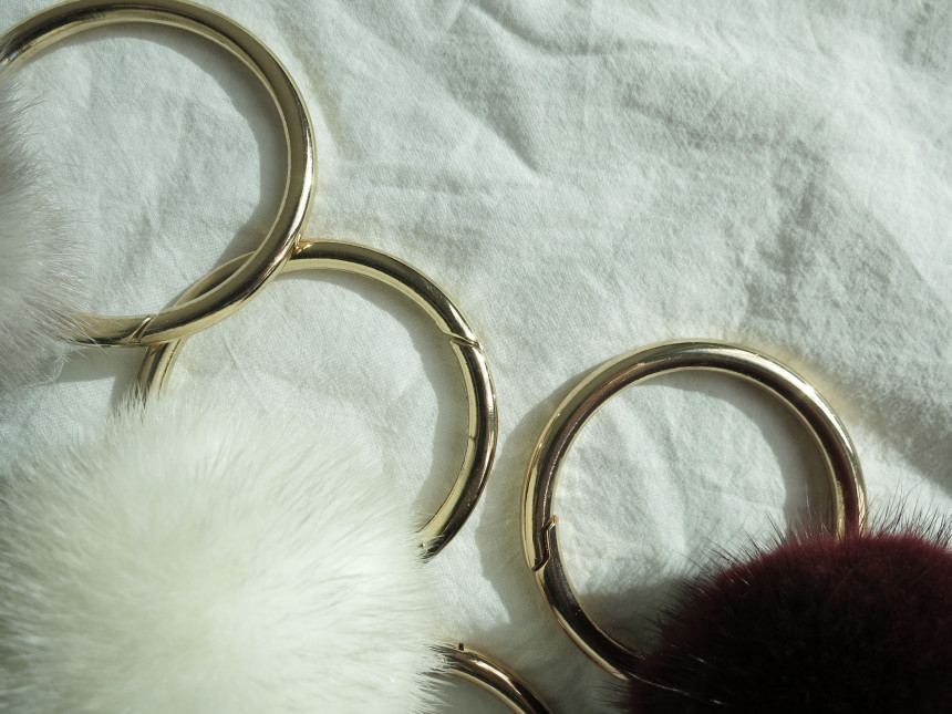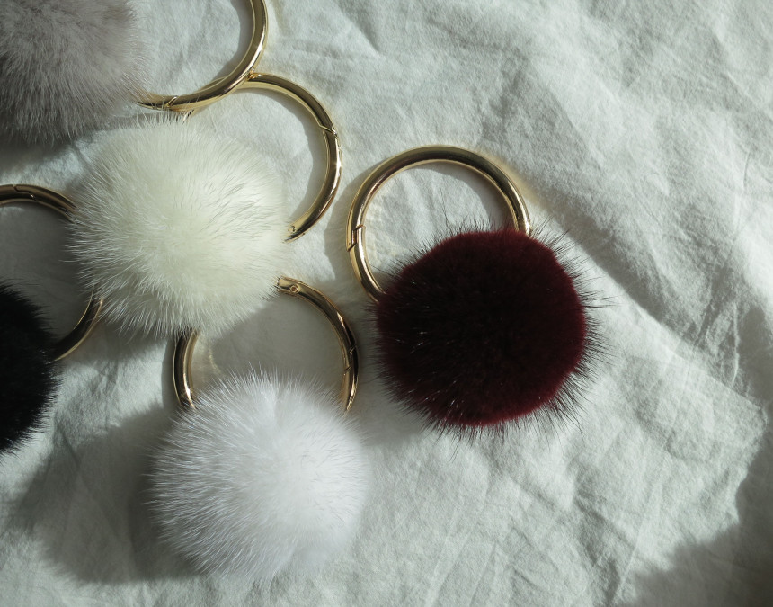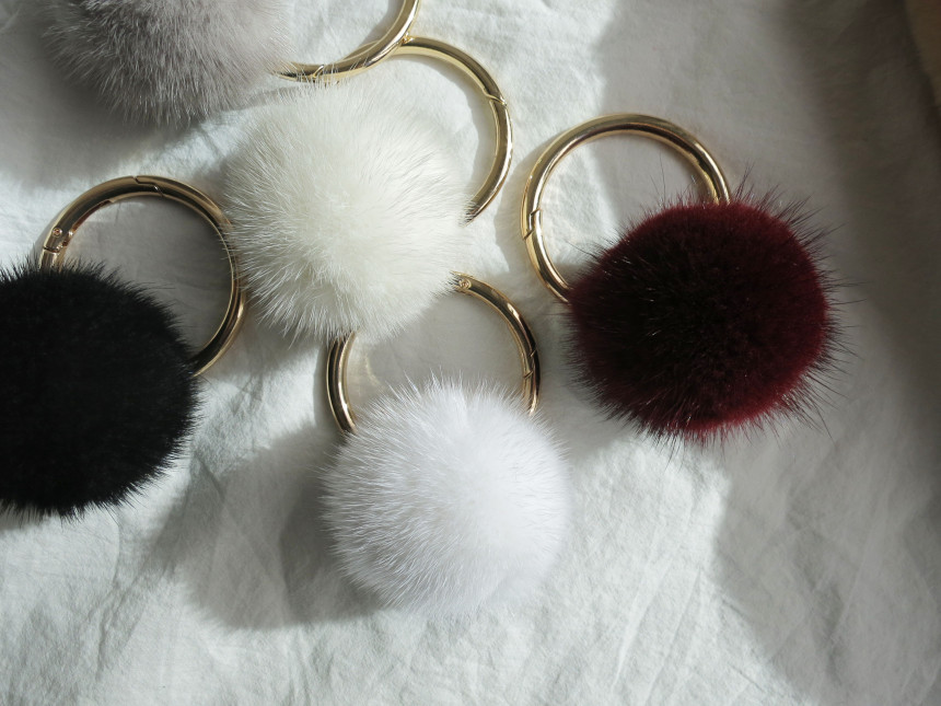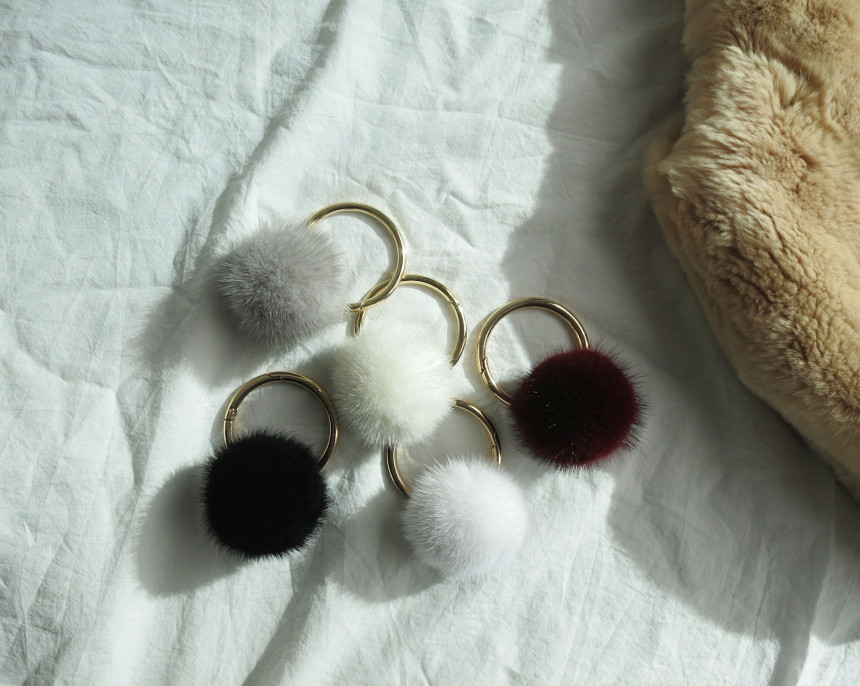 많이 볼 수 있는 동그란 밍크방울이지만 커다란 링이 함께 있어 유니크 느낌을 만들어주는 디자인이예요. 큰 링 덕분에 두툼한 가방 손잡이에 걸기에도 좋구요. 밍크방울이 심플해서 키링으로 사용하기에도 편리하답니다. ;) 밍크방울은 다양하게 화이트,아이보리,그레이,버건디,블랙 다섯가지 색상으로 준비했어요.