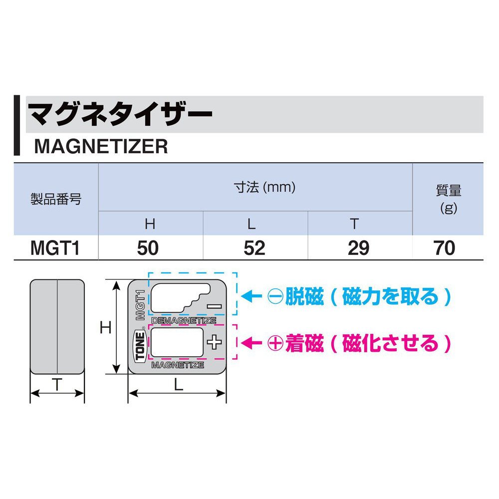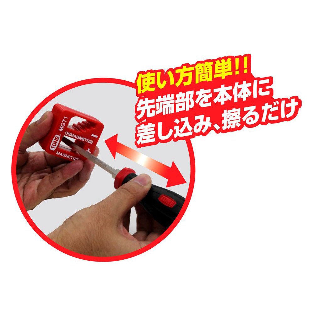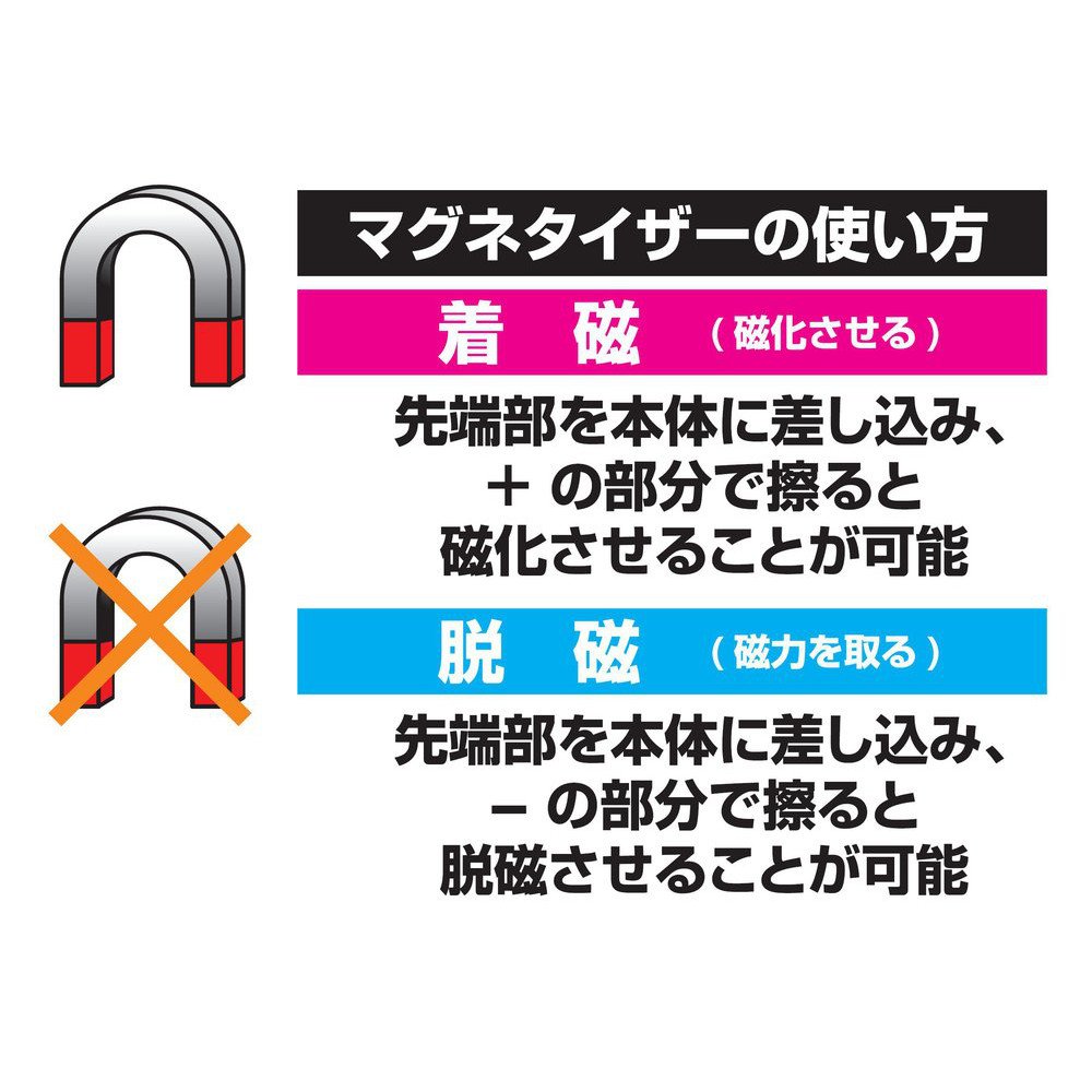 It is possible to magnetize and demagnetize the tip of a screwdriver, a hexagonal wrench or the like.
