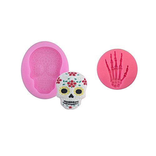 2 PCS Clay Mold Silicone Halloween Mold Skull Hand Candy Mold Chocolate Baking Mold Fondant Soap Decorating Moulds