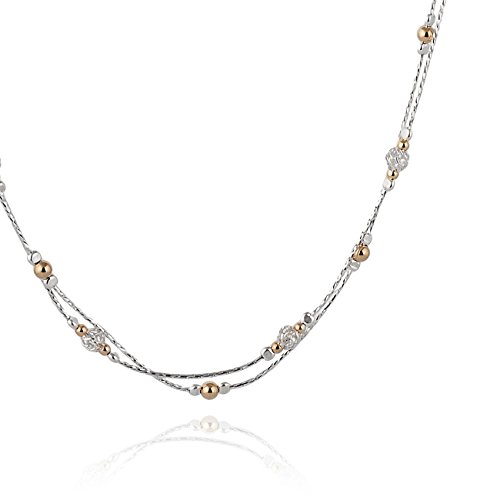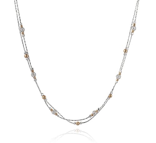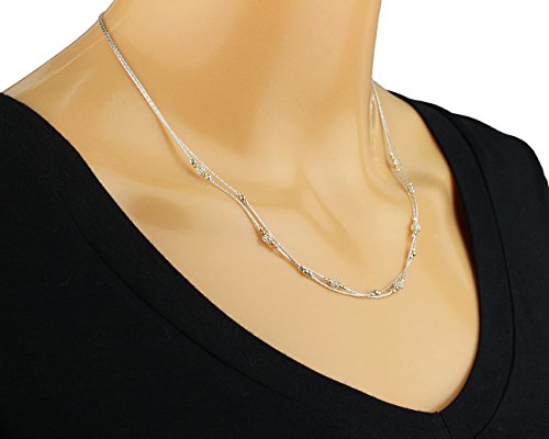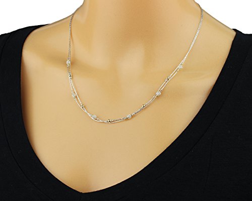 Elegant 925 Sterling Silver double strand necklace with Silver wire mesh net bead stations and 14k Gold Filled polished bead stations. The Silver net beads measure about 4 mm each. Artisan handmade.
