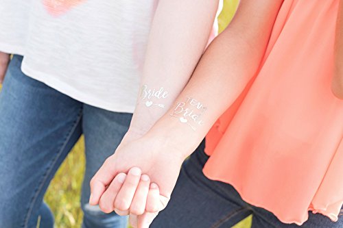 LONG-LASTING METALLIC DESIGN: Packed in a set of 10 Team Bride tattoos and 2 Bride tattoos in a glossy, shiny Silver Color for backups in case you make a mistake; Sized 2 x 2 inches each to perfectly be placed on your arm, shoulder or anywhere on your body