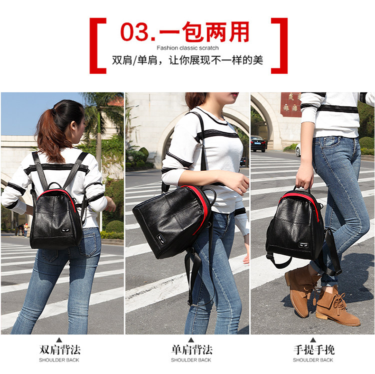 新款休闲书包个性羊皮真皮背包时尚软皮旅行包双肩包女韩版潮