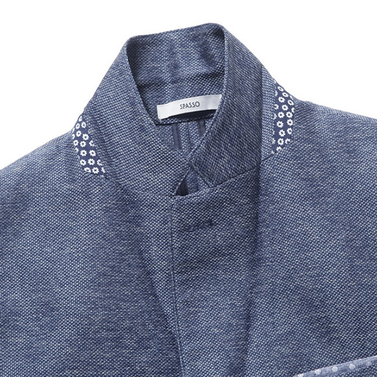 - 기본 라펠 디자인에 이면의 플라워 패턴을 매치하여