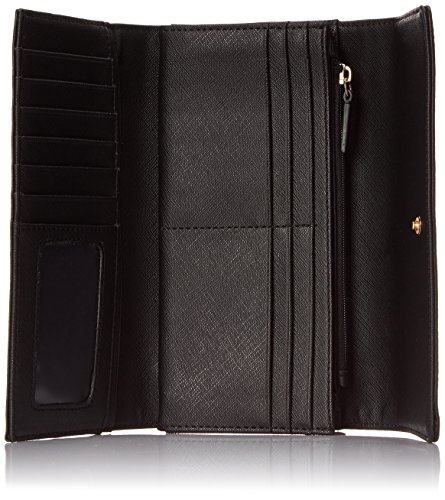 12 credit card slots, 1 ID window, 2 media pockets, 2 gusseted pockets, 1 zipper pocket