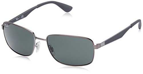 -. Title : Ray-Ban Double Bridge Metal Square Sunglasses in Black Grey Green RB3530 002/71 58