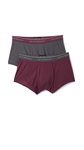 Emporio Armani Men's Stretch Cotton 2 Pack Trunk, Smoke/Aubergine, L