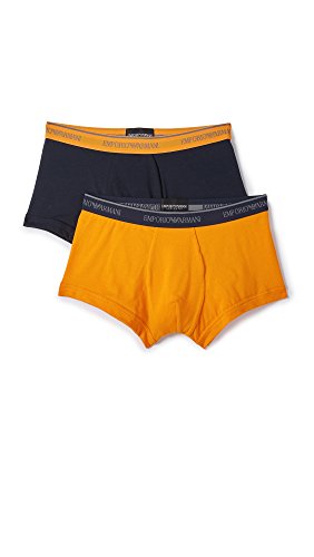 Emporio Armani Men's Stretch Cotton 2 Pack Trunk, Marine/Pumpkin, L