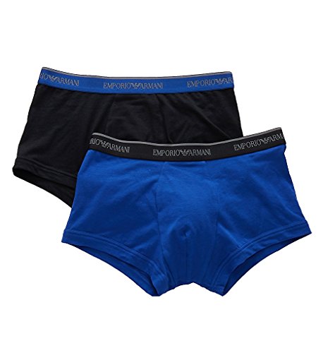 Emporio Armani Men's Stretch Cotton 2 Pack Trunk, Black/Electric Blue, L