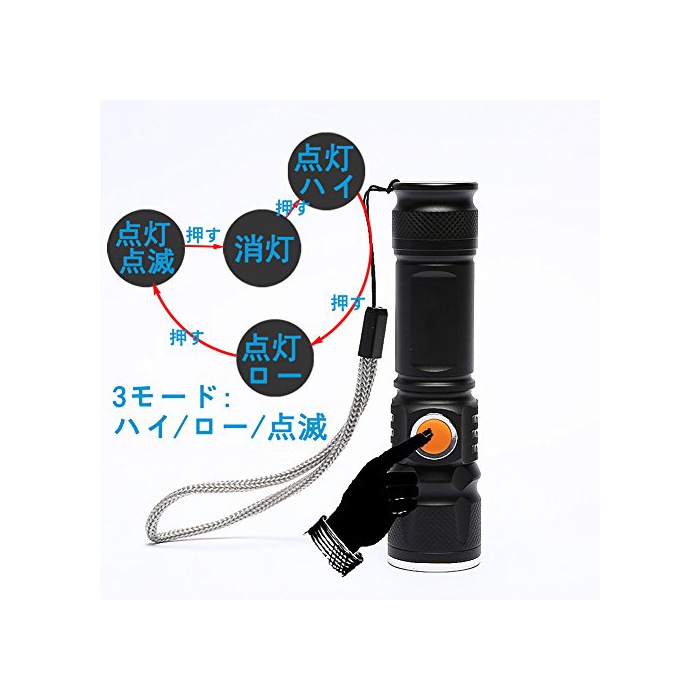 원본상품명: CREE XM-L2 五つのモド 高輝度LED中電 超小型?量 軍事用 力 防災 防犯 キャンプ アウトドア 夜釣りライト