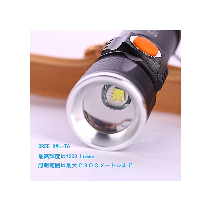 2,업그레이드판CREE XM-L2전구 탑재.1200루멘의 고휘도입니다.압축 내성,방수,미끄럼방지,방열 등의 특징이 있습니다.