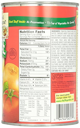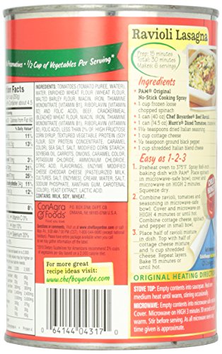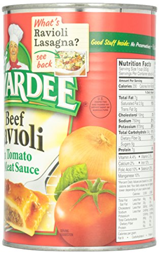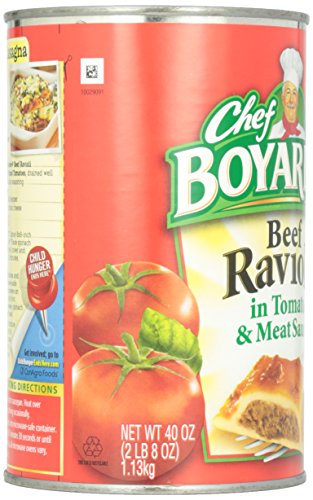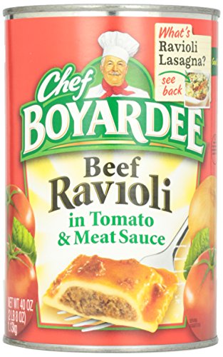 -. Binding : Grocery -. Brand : Chef Boyardee -. EAN : 0064144043170 -. Feature : This Beef Ravioli in tomato and meat sauce is a fun meal for the kids and is ready to serve in seconds. Just heat and eat! / When you serve Chef Boyardee to your family, you give them a wholesome meal as well. Chef Boyardee is made with premium beef, enriched pasta and has no preservatives. / Chef Boyardee Beef Ravioli is a fast and simple meal solution with great flavor you will love and enjoy! / Made with 0 grams of trans fat per serving! -. Label : Chef Boyardee -. Manufacturer : Chef Boyardee -. Model : dinirao -. MPN : 404020921764 -. PartNumber : 404020921764 -. ProductGroup : Grocery -. ProductTypeName : GROCERY -. Publisher : Chef Boyardee -. Studio : Chef Boyardee -. Title : Chef Boyardee Beef Ravioli in Tomato & Meat Sauce - 40 oz -. UPC : 064144043170