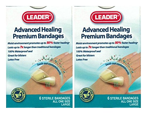 -. Feature : Advanced Healing Premium Bandages / Lasts up to 7x longer than traditional bandages / 100% Waterproof seal / Latex Free / 6 Sterile Bandages, Large (2 PACK)
