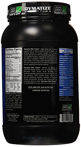 -. Binding : Health and Beauty -. Brand : Dymatize -. EAN : 0705016226085 -. Feature : Ideal for overnight sustained muscle growth and repair / Great for in-between meals / Sustained release over extended periods of time -. Label : Dymatize -. LegalDisclaimer : Actual product packaging and materials may contain more and different information than what is shown on our website. We recommend that you do not rely solely on the information presented and that you always read labels, warnings, and directions before using or consuming a product. -. Manufacturer : Dymatize -. Model : 665 -. MPN : 665 -. NumberOfItems : 1 -. PackageQuantity : 1 -. PartNumber : 665 -. ProductGroup : Health and Beauty -. ProductTypeName : HEALTH_PERSONAL_CARE -. Publisher : Dymatize -. Size : 2 lbs (918g) -. Studio : Dymatize -. Title : ELITE CASEIN VANILLA 2LB -. UPC : 705016224579