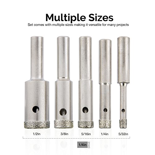 Neiko 00823A Diamond Grit Hole Saw Drill Bit Set, 5 Piece | 5/32” – ½”