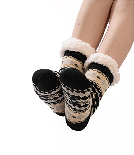 -. Feature : Material: Made of high quality material, 76% Cotton, 22% Polyester and 2% Spandex. Soft and warm. / Size: One siz fits most. The womens, girls slipper socks come is a standard US SIZE that fit womens shoe sizes from 5-10. / Fleece lining cozy socks, fleece lined inside, warm and comfortable, keeping your feet, ankles and lower legs extremely warm. / Non-slip socks, silicon rubber grips on the soles of socks prevent to slip and fall on smooth floors.Great for louging around the house, sitting on the counch watching TV, stylish and comfortable. / Great gift idea: Fashion funny Christmas winter socks, perfect for Christmas or daily wear. Beautiful design for the coming Christmas festival. Ideal gift for your family and gift as Christmas gifts.