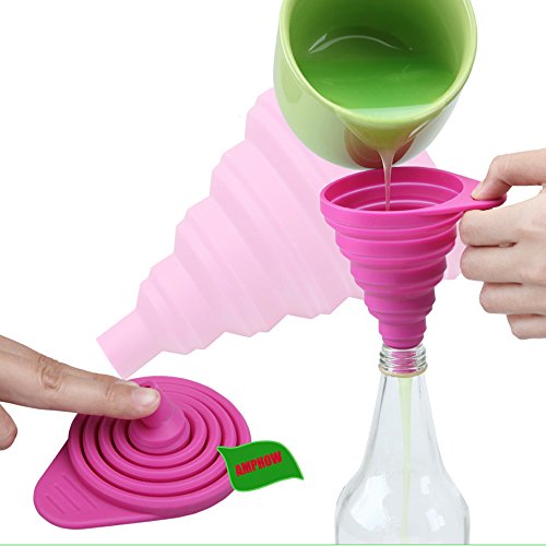 -. Title : Silicone Funnel - AMPHOW Foldable Funnel for Liquid Transfer 100% Food Top Grade Silicone,2Pcs, Pink