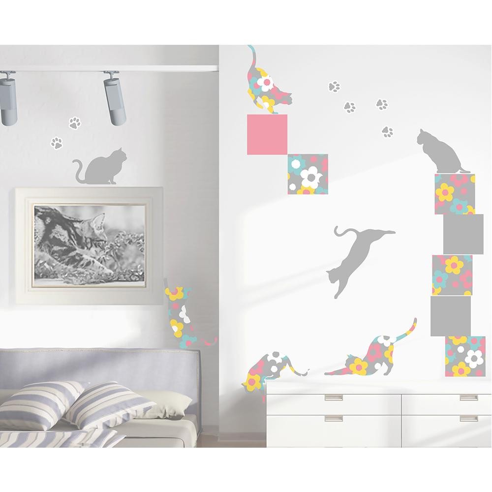 | 猫好きの方なら必ずといっていいほどわかる、猫特有の動き。例えば起きるときの伸びや高所から飛ぶときのしぐさ、爪をとぐ様子・・・そんな動きを繊細に、リアルに再現したウォールステッカーです。 |