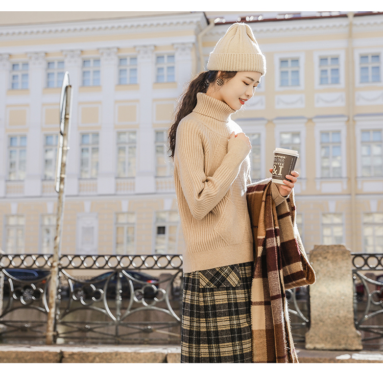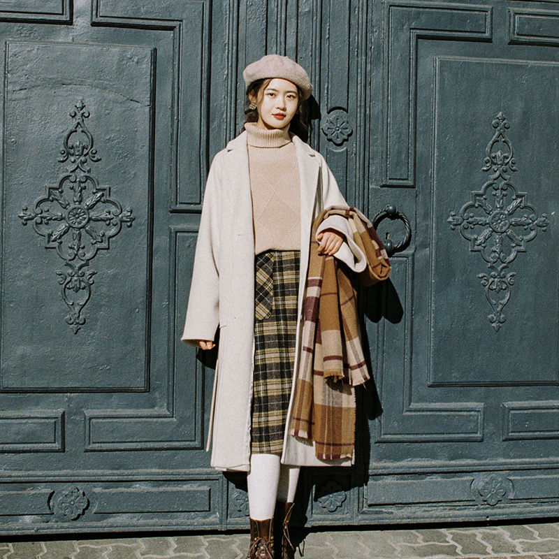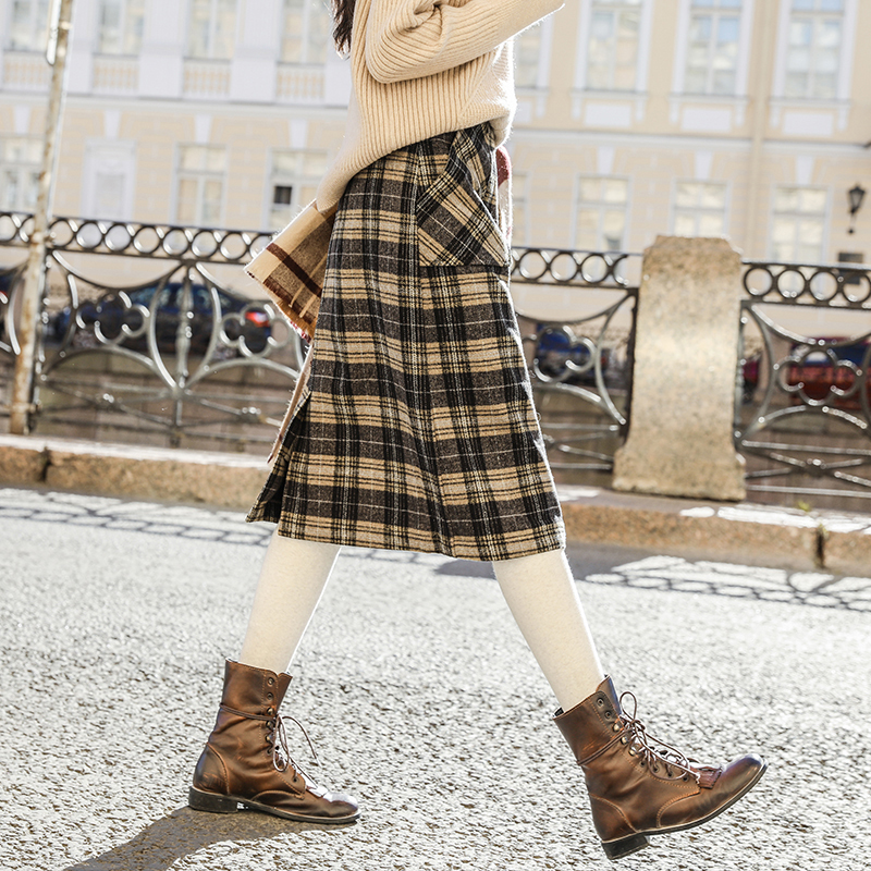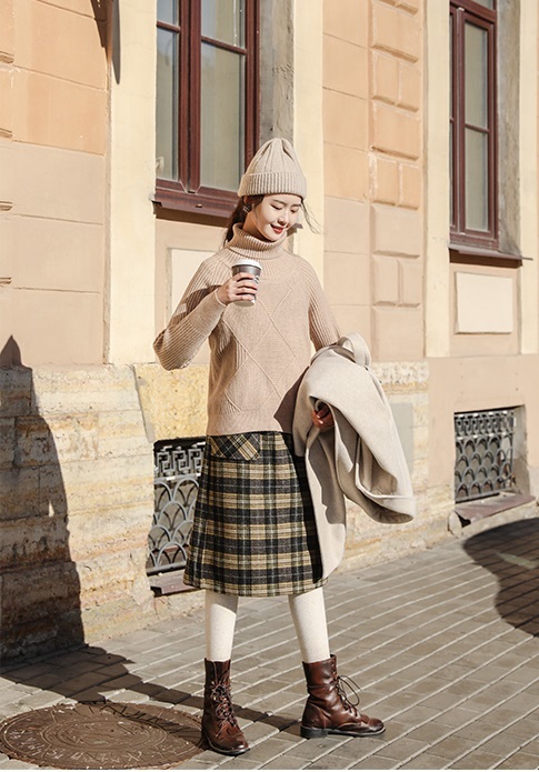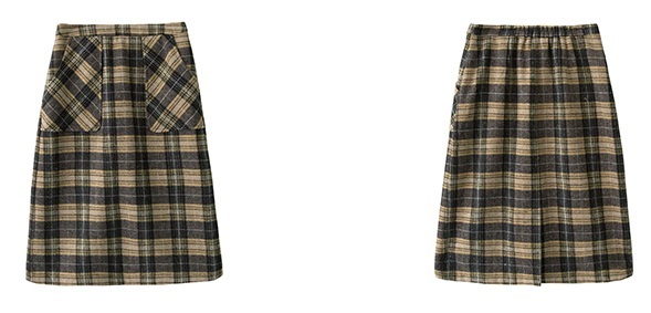 落ち着いた色合いのチェック柄とひざ下丈で、幅広い年齢の方に愛用頂けます。
