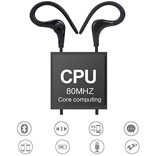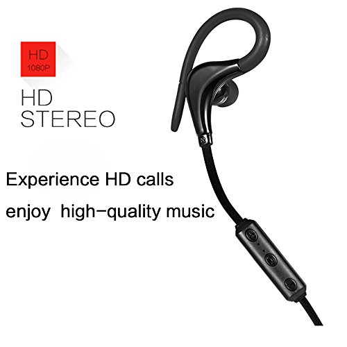 SUFUM Earhook Headphones Wireless Bluetooth Sport&Running Stereo with Noise Cancelling Earphones Earbuds (Black)