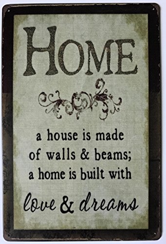 Home - a house is made of walls & beams; a home is built with love & dreams 30x20 cm Vintage Retro Metal Sign